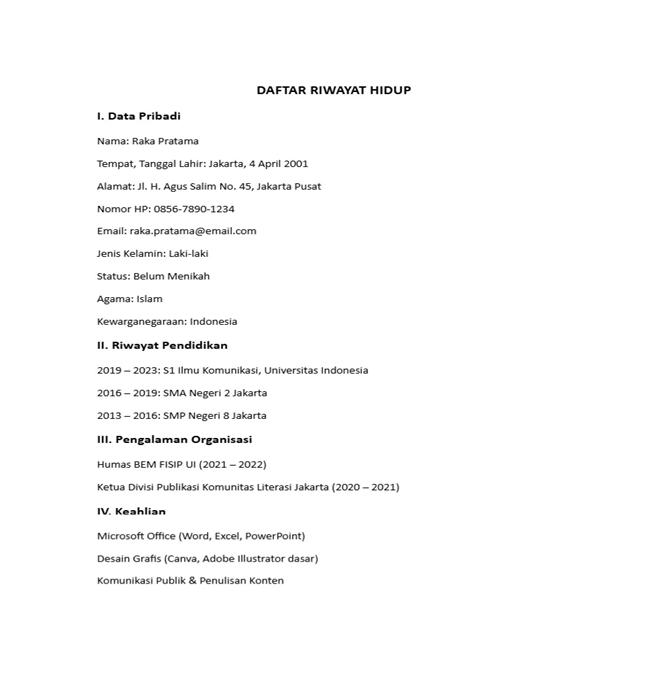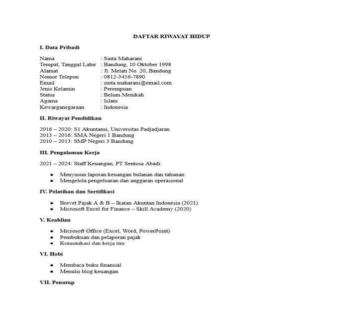 Di bawah ini terdapat contoh daftar riwayat hidup yang dapat langsung kamu gunakan saat melamar pekerjaan.